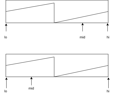 else if(nums[mid] > nums[hi]) // mid is to the left of break